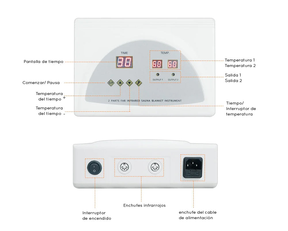 - Control independiente de temperatura en 2 zonas, ideal para tratar áreas específicas con diferentes intensidades.